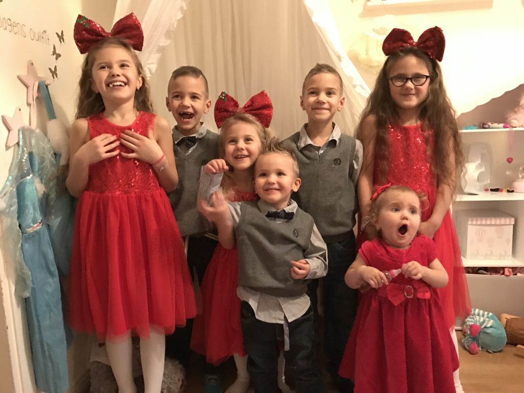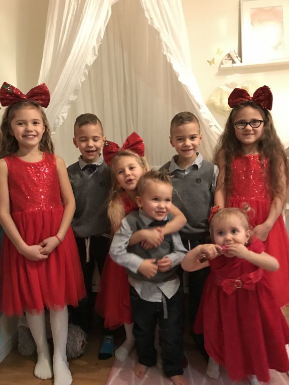 Vanessa fick hålla i Celinas klänning så hon inte skulle knalla iväg och grabbarna tycker det är jätteskojigt att grimasera på varje bild… och stor tjejerna tappar då tålamodet och Olivia ska hoppa och skutta så hon fastnar inte ens. 😀