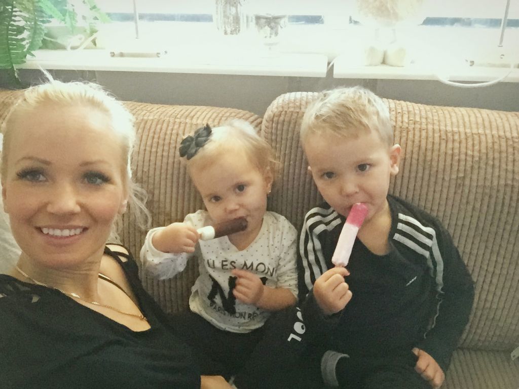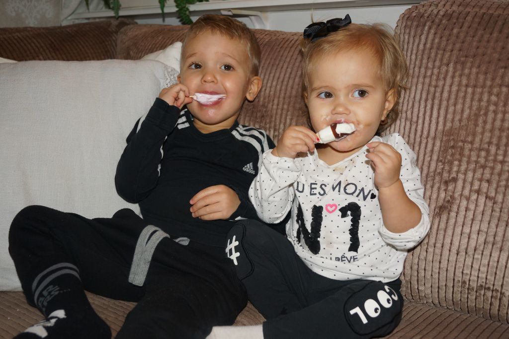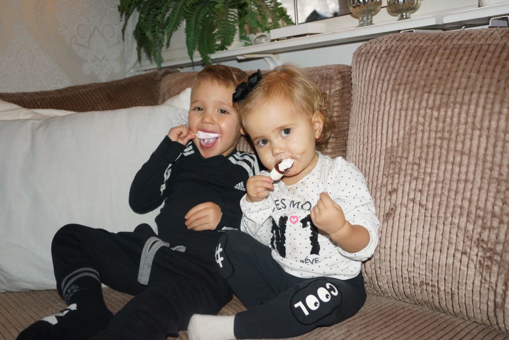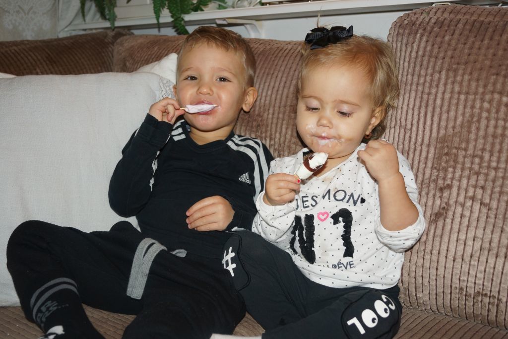 Sen satte jag igång med att dammsuga och när jag kom tillbaka så hade Kevin vart och tjuvat en glass till, han hade vart snällt och öppnat en till lillasyster också. Där satt dom igen, tätt intill varandra och åt glass. Igen.