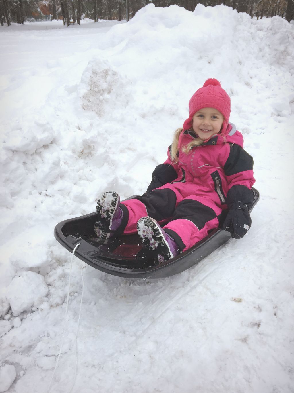Olivia fick test åka den när vi lämnade syskonen på skolan och hon tyckte att det var riktigt kul. Tanken är väl egentligen att jag sätter Kevin & Celina i pulkan när vi lämnar/hämtar från skolan/föris om det är jätte mycket snö, men i morse kom min mamma hit och passade dom små. ♡ Dessutom så börjar allt snö smälta bort nu och det börjar bli blött och slask. Så tråkigt.