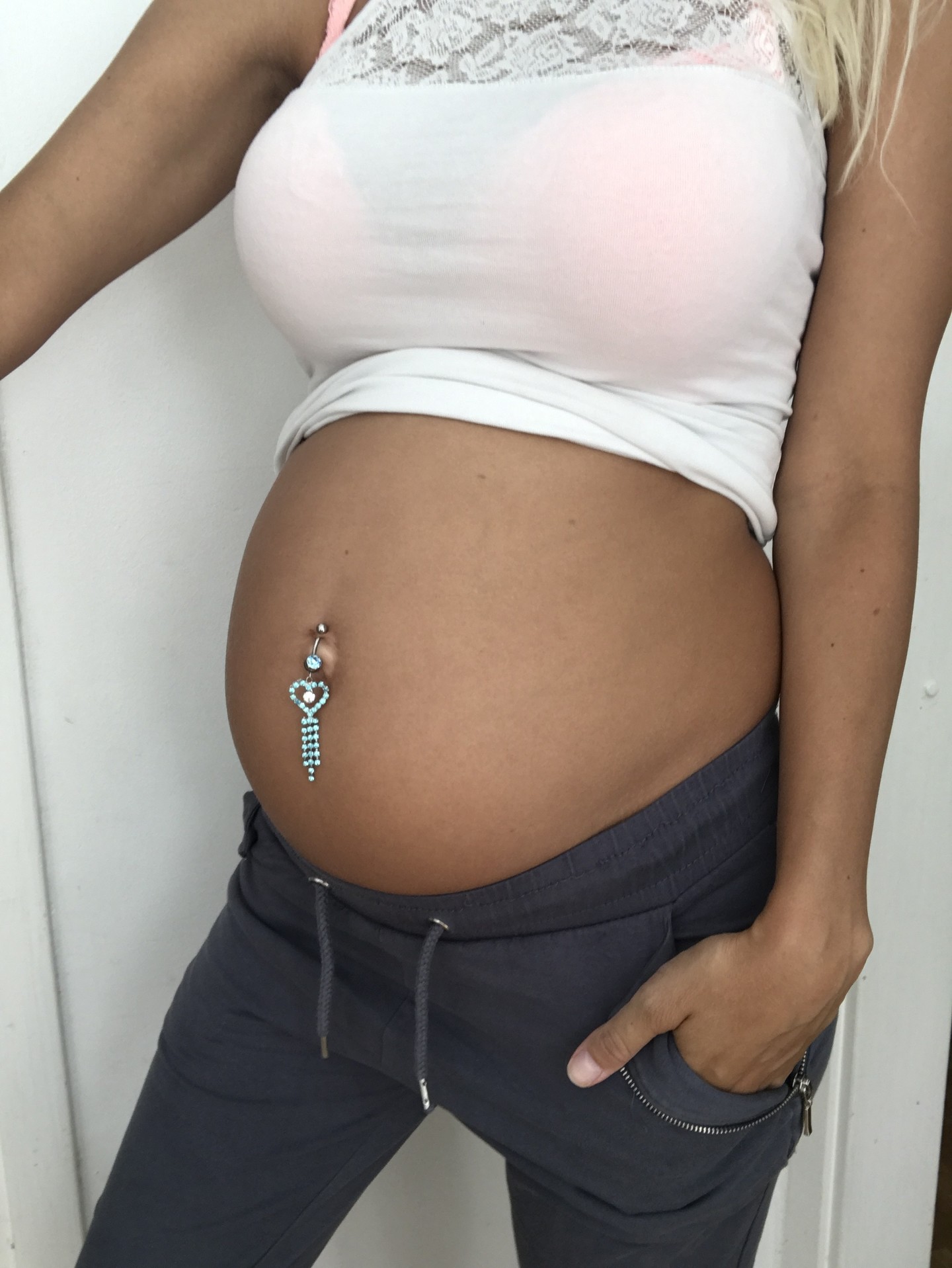 Andres har känt henne sparka jätte tydligt mot hans hand för nån vecka sen. Så häftigt när man kommit så långt in i graviditeten att andra märker av det också. Alltid när barnen försöker känna så är hon hur lugn som helst, haha 😀