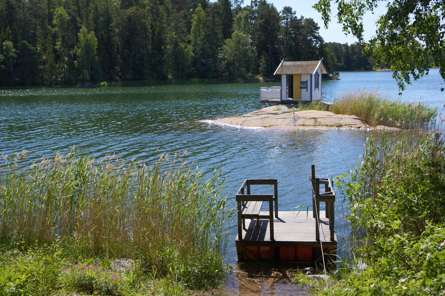 Älskar det lilla huset på miniön och himla coolt med flotten ut dit! Vill bo där ju. 😀