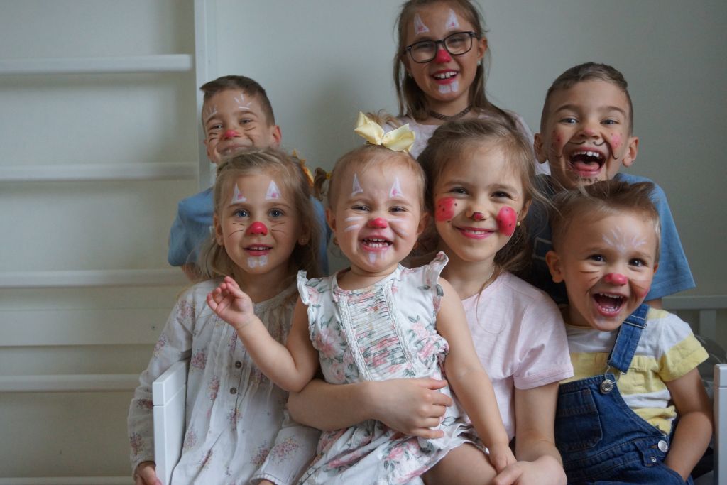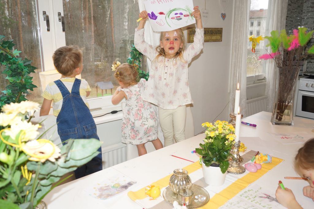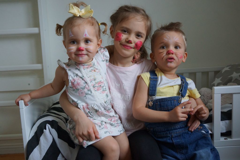 Igår målade jag barnen till påskharar, påskkärring och påskgubbar, så söta dom blev! Tiggde till mig ett syskonkort på dom allihopa också i vanlig ordning. Jag är inte så poppis när jag frågar om jag får ta en bild på dom alla längre, just för att nån alltid spelar pajas och de andra tröttnar.