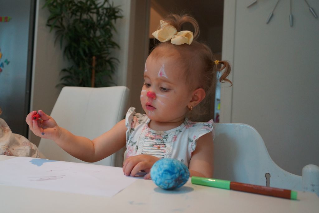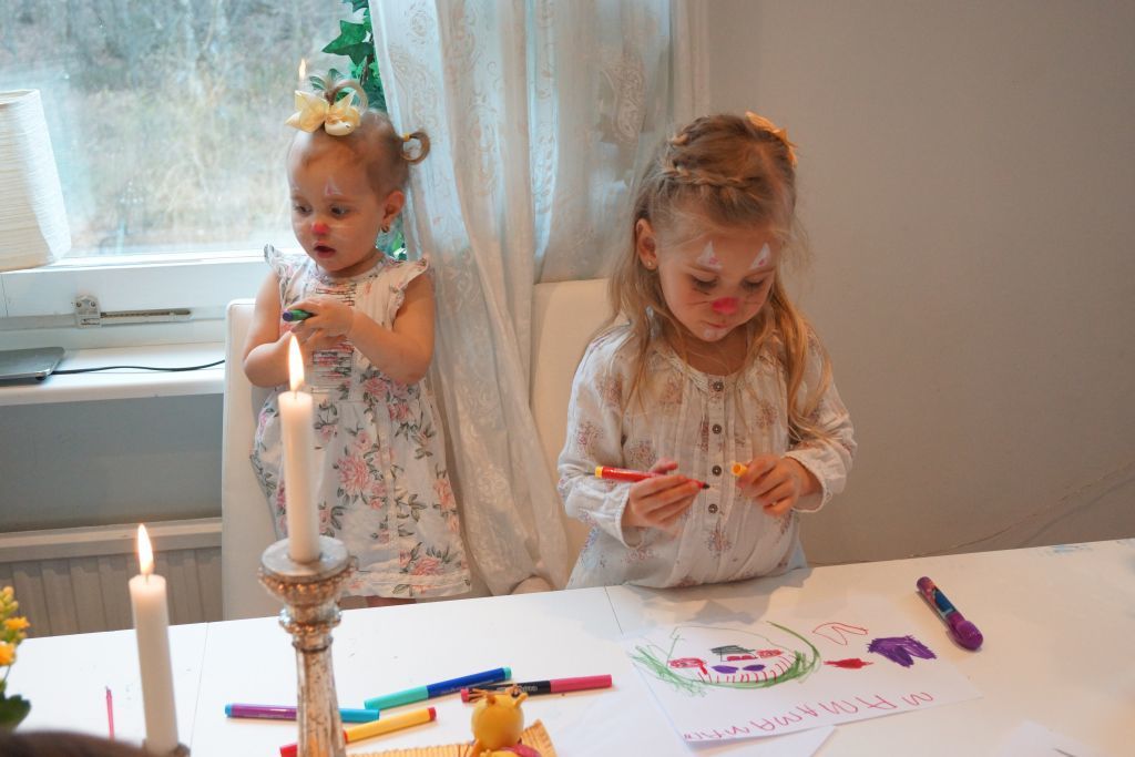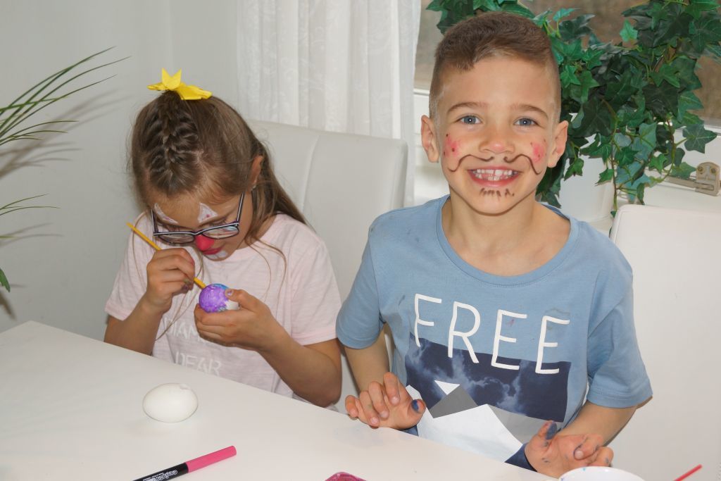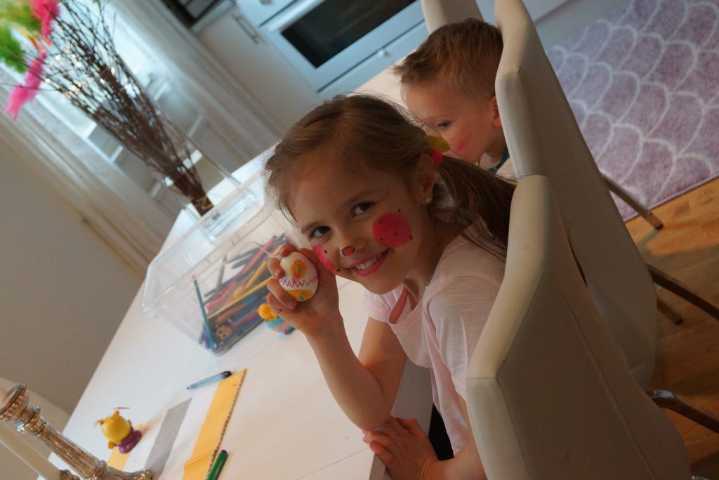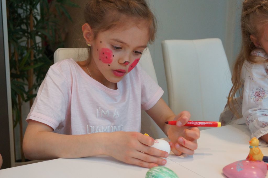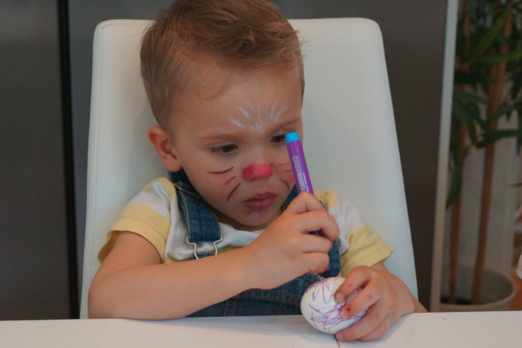 Efter ansiktsmålning hade jag lovat att dom ska få måla ägg. Pennorna kom fram också för då blir det mycket snyggare tyckte dom 🙂 Målade ni ägg när ni var små?