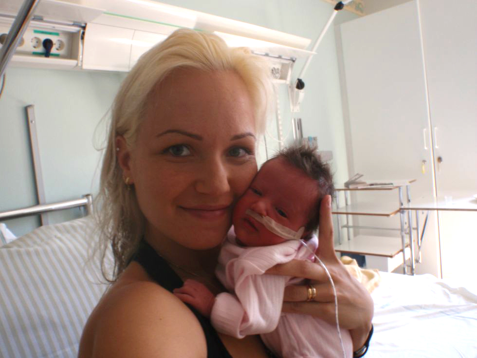 Jag bad sköterskorna om smärtstillande, men dom ville inte ge mig nånting, trots att jag sa att det gör jätte ont. ”Du är bara öppen 1-2 cm, det är bara förvärkar.” svarade dom. ”Snälla kan ni titta igen och ge mig smärtstillande, det här är inte förvärkar!” Men icke. Jag fick 2 alvedon. 5 minuter senare orkade jag inte mer, samma sköterska kom in i rummet, fortfarande tittade hon inte, sen kom en läkare och sa att det ser ut som att jag har ont- och hon tittade. jag var öppen 10 cm och höll på att krysta! Då fick dom bråttom att skicka mig till förlossningsrummet, fortfarande med mina egna kläder på, jag gick till det rummet och stannade vid dörren för att krysta. Jag fick inte utan dom bad mig vänta tills jag ligger ner (jätte lätt när man har krystvärkar) Men jag hann ta mig till sängen, dom drog av mig kläderna medans jag krystade och ut kom en pytteliten Vanessa.