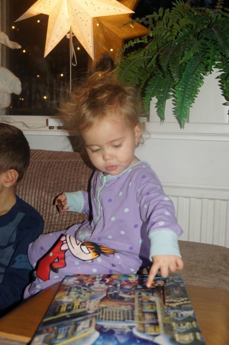 Vi tittade också på Julkalenderna på TV, den verkar jätte mysig och lovande. Det brukar vara en lott med julkalender på TV, förra årets gillade varken jag eller barnen. Men nu satt vi fastklistrade direkt från första avsnitt! Tummarna upp för årets kalender hittills! Det blir repris av den ikväll som vi ska se på när hela familjen är samlad. Någon tyckte att det var synd att pappa inte hann se.