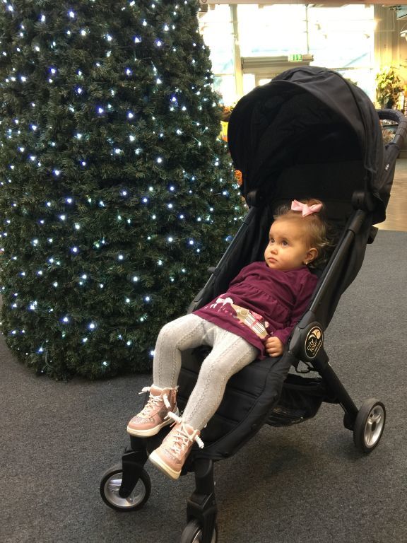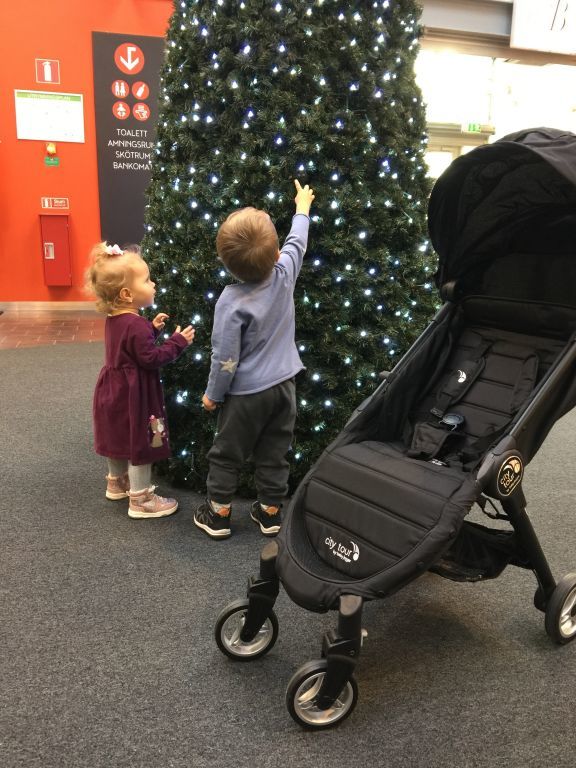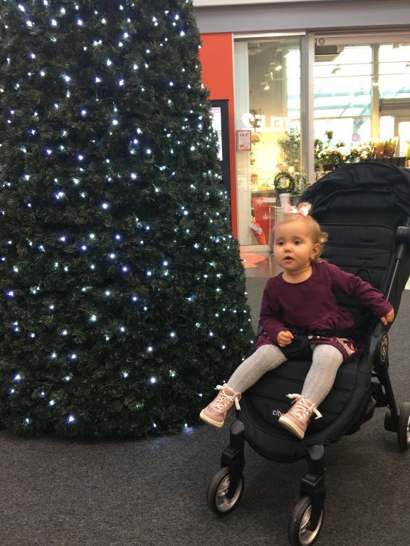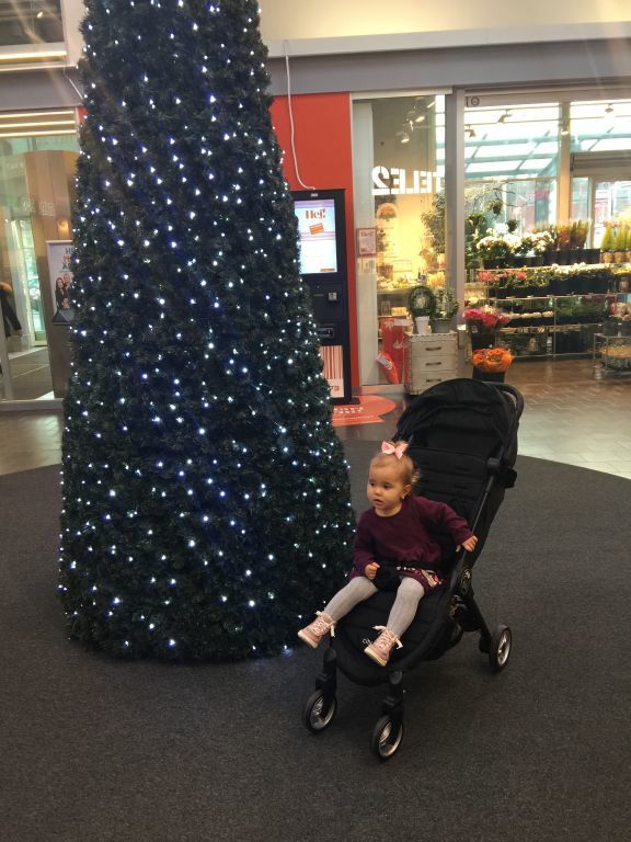 Celina var helt fascinerad av den stora julgranen! Stod och pillade på lamporna… jag blev lite nervös för hur hon kommer att reagera när våran julgran sätts upp den 6:e december…. 😀