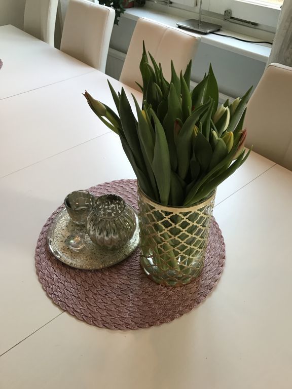 Jag har köpt mig en bukett tulpaner, ser så mycket mysigare ut i köket med en fräsch bukett på bordet 🙂