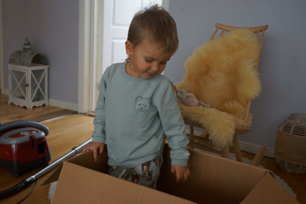 Nu tog jag upp två kartonger med storlek 86 till Celina.