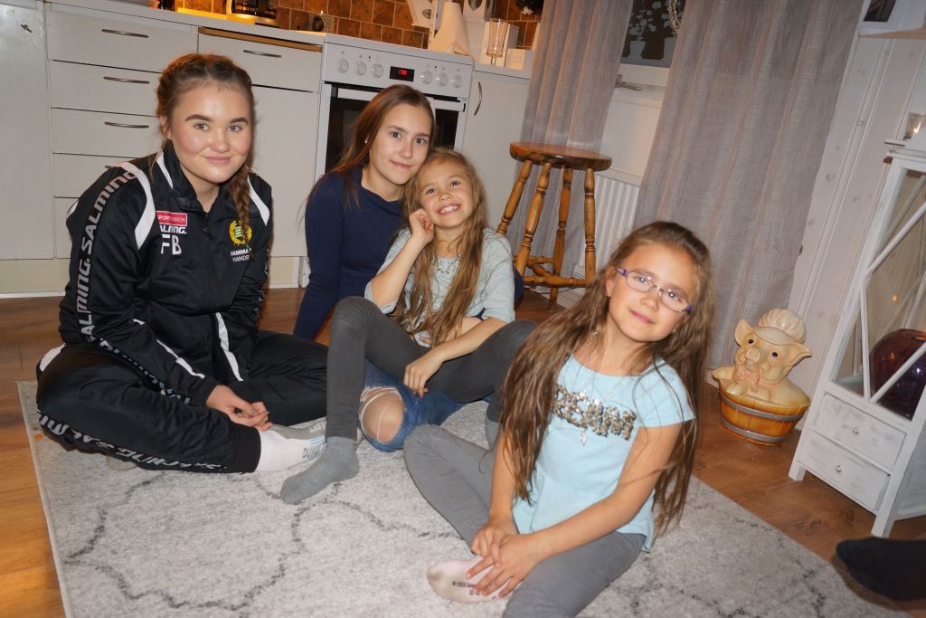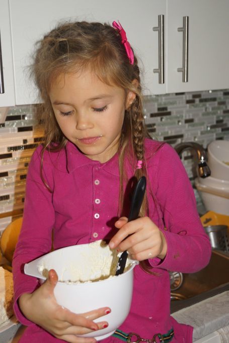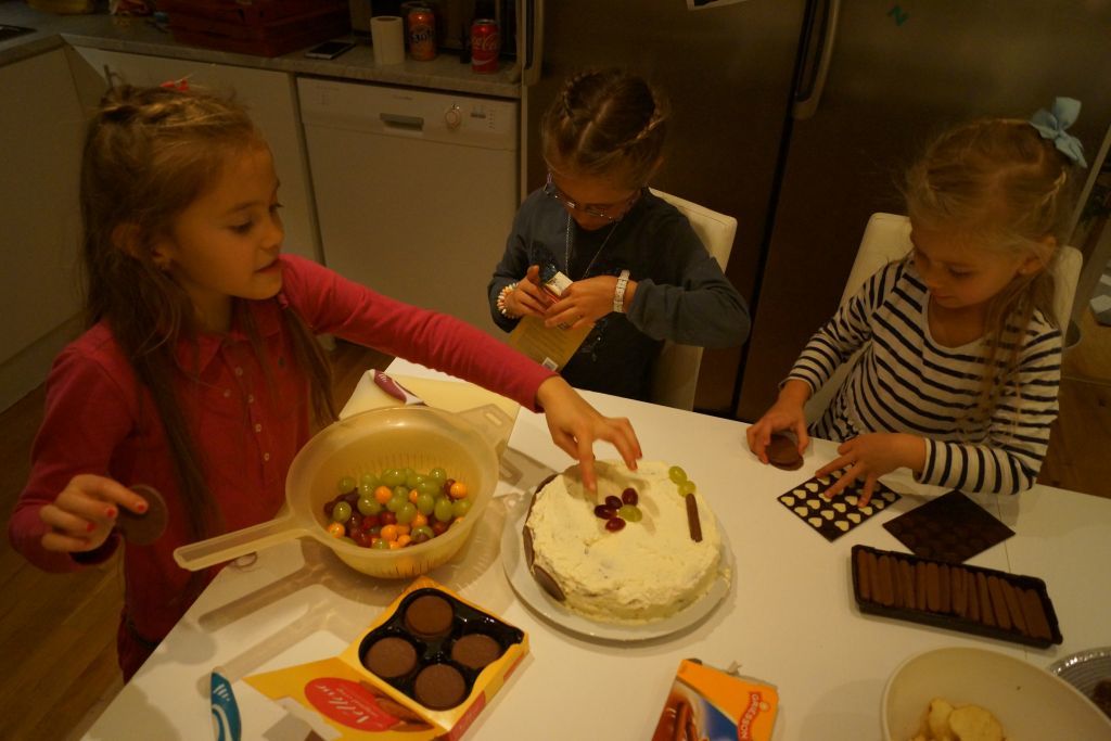 Alla 4 tjejer ville vara med och dekorera tårtan…. Några ville helst bara äta upp dekorationen… 😉