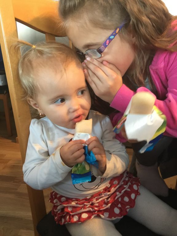 Vanessa viskar roliga saker i lillasysters öra som hon glatt upprepar 😀