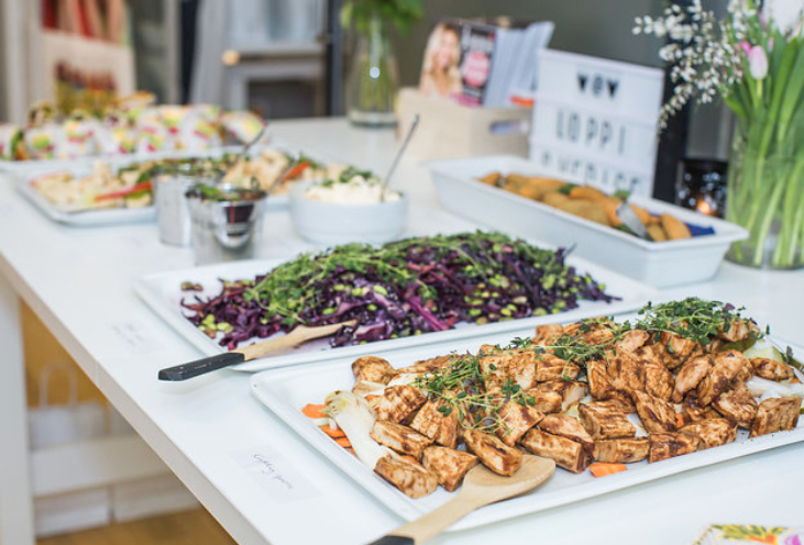 Först välkomnades vi med bubbel och supergod vegetarisk buffé.