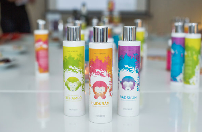 Naturliga ingredienser, tillverkas i Sverige och rik på verksamma ämnen är bara en del av allt positiva. Söta som ge-bort gåvor också tycker jag. Aporna var ju så söta tycker jag, under varje rubrik på flaskan står saker som ”för våra små torrbollar” för våra små badkrukor” och ”för våra små kortgrisar” 😀
