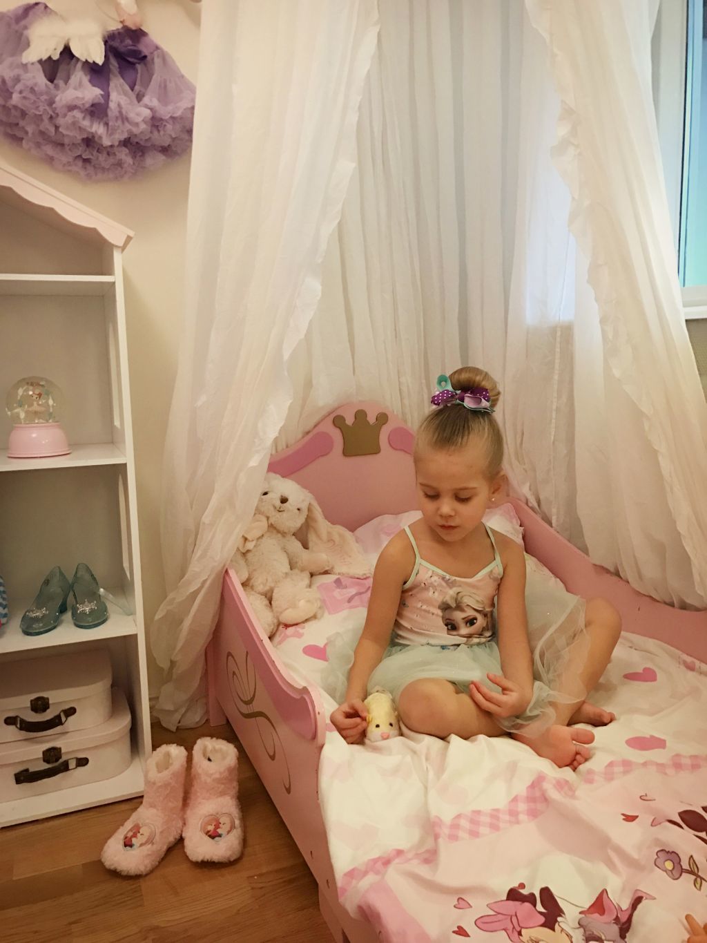 Lördag idag alltså och dagen till ära ville Olivia vara en ballerina (?) Hon måste ha drömt för det var det första hon sa när hon vaknade, hon ska vara ballerina och ha sina ballerina kläder och ”nuttura” (håret uppsatt i en knut)