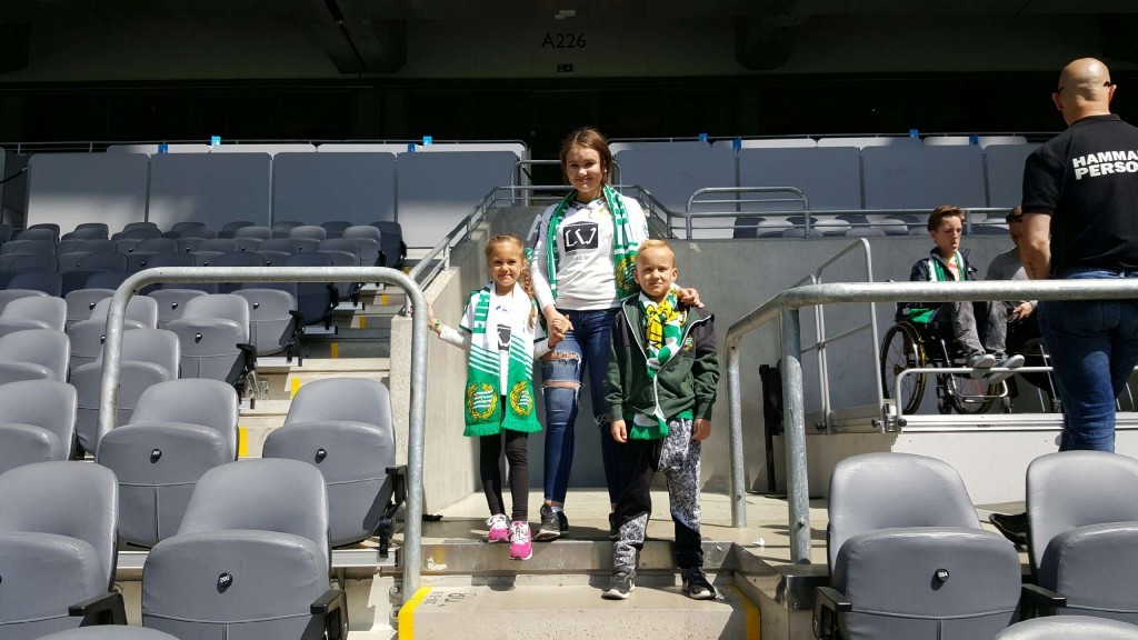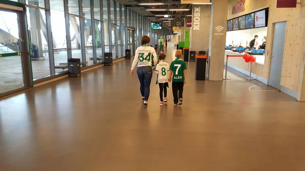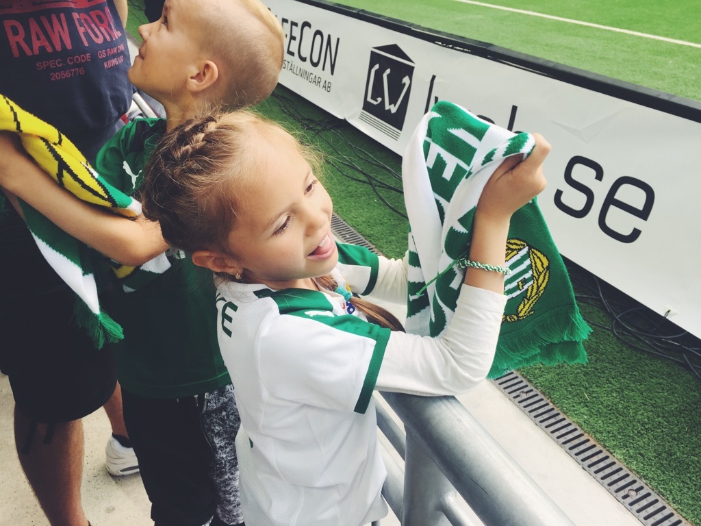 Nicoles Gudfar Patrik tog med sig Nicole och barnen Felicia & Dewin på en Bajen match här i söndags som hennes födelsedagspresent. Dom är inbitna Bajen fans det har dom alltid varit och dom har nog inte missat en enda match. Felicia har även lyckats hjärntvätta tjejerna med en massa Bajens sånger 😀