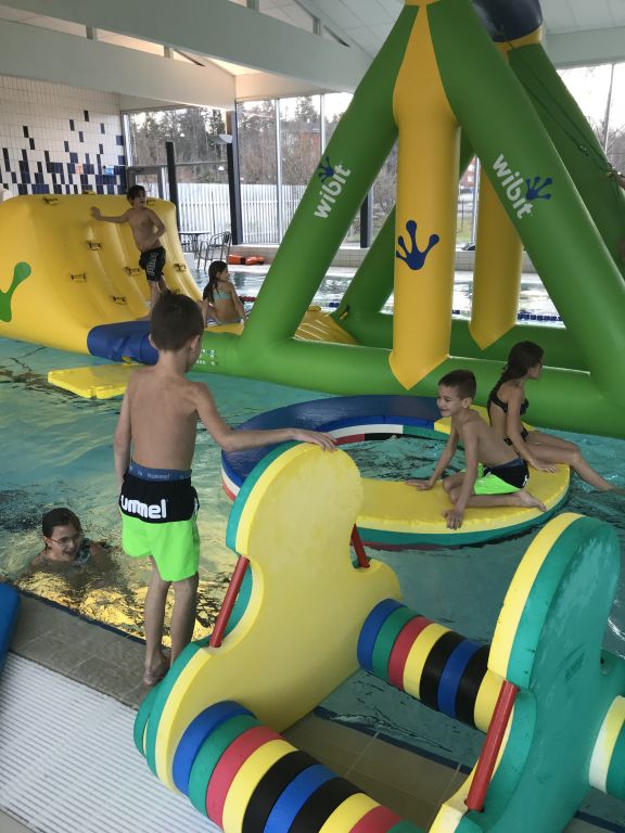 Igår kunde vi äntligen komma iväg på lite roligheter. 3 av barnen åkte på feber i omgångar så det har inte blivit så mycket ute äventyr för oss. Men igår var alla friska så vi drog och testade Ösmos simhall där de hade en hinderbana i vattnet. Endast under kommunens lov vad jag förstod.