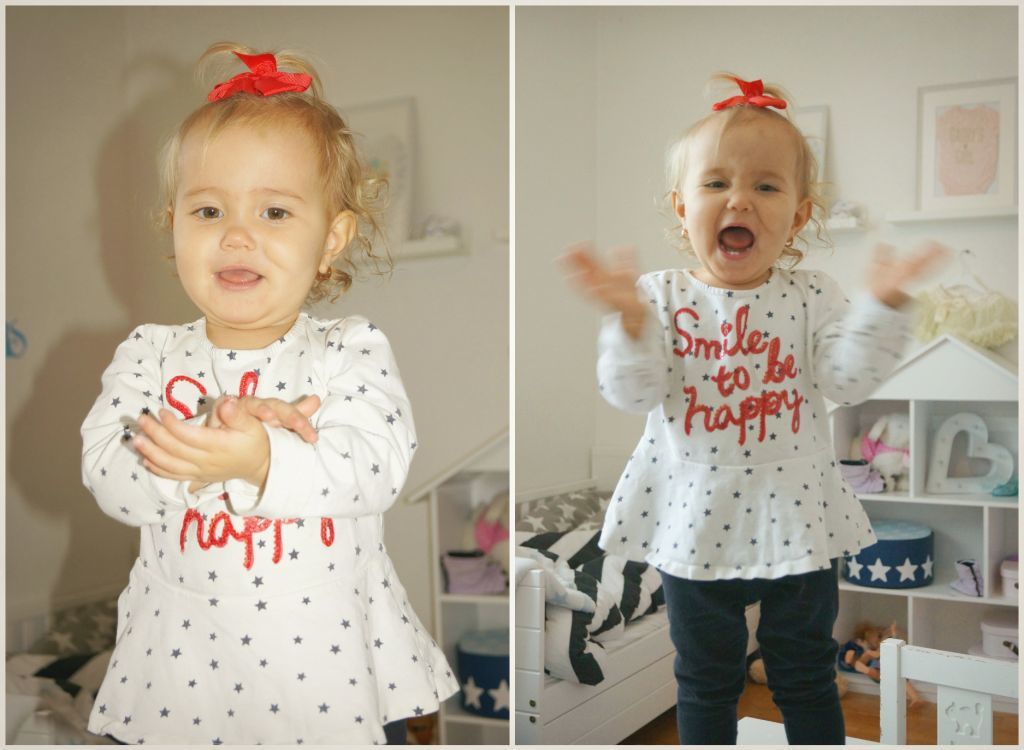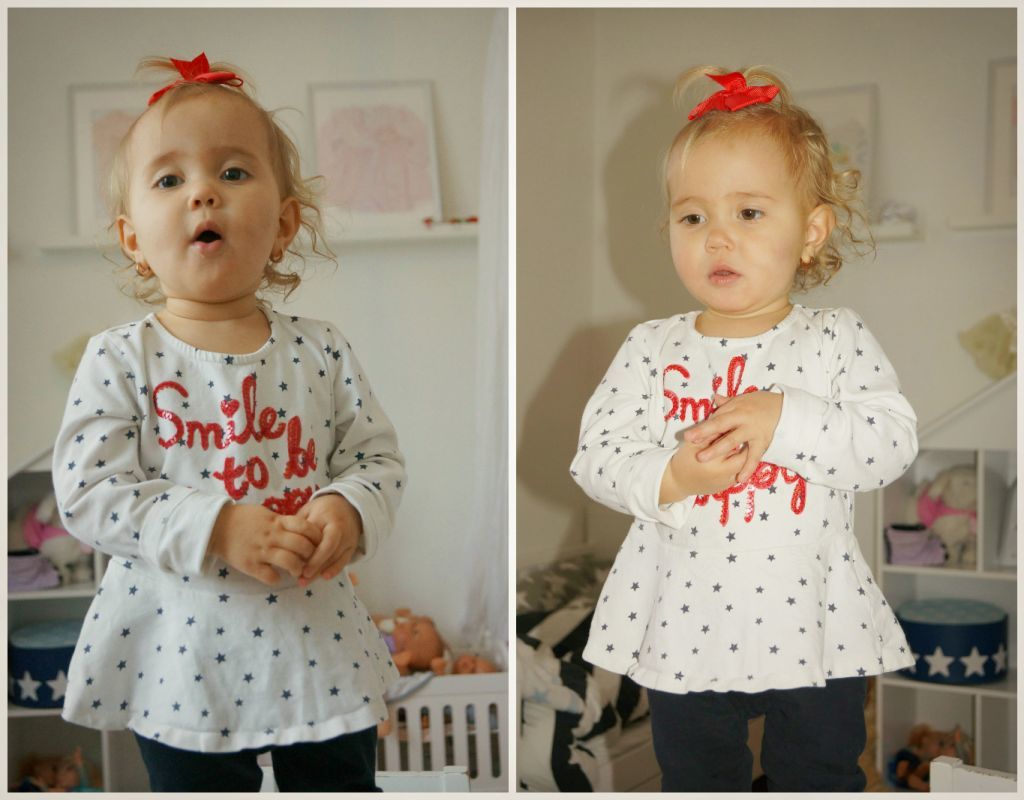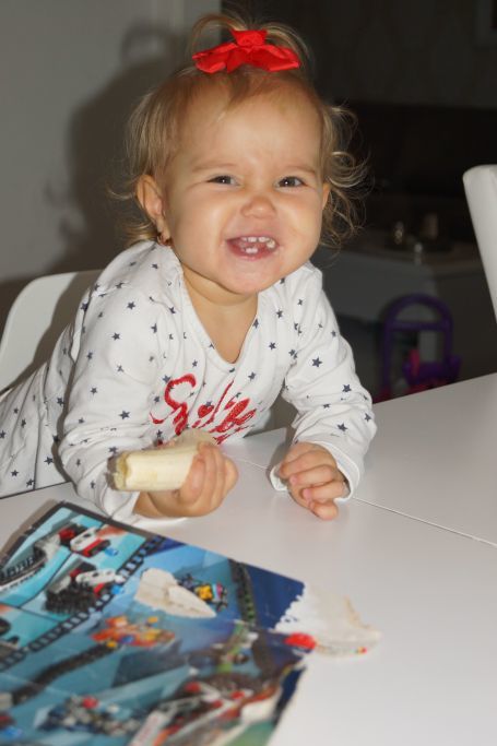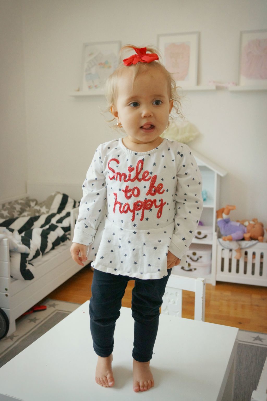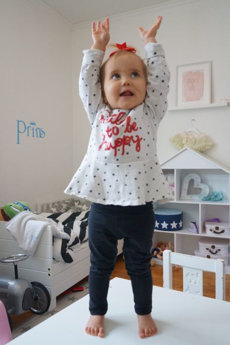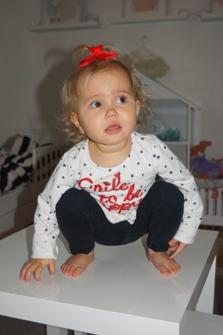 Jag fick till några söta bilder på Celina när hon klättrade upp på sitt lilla bord.