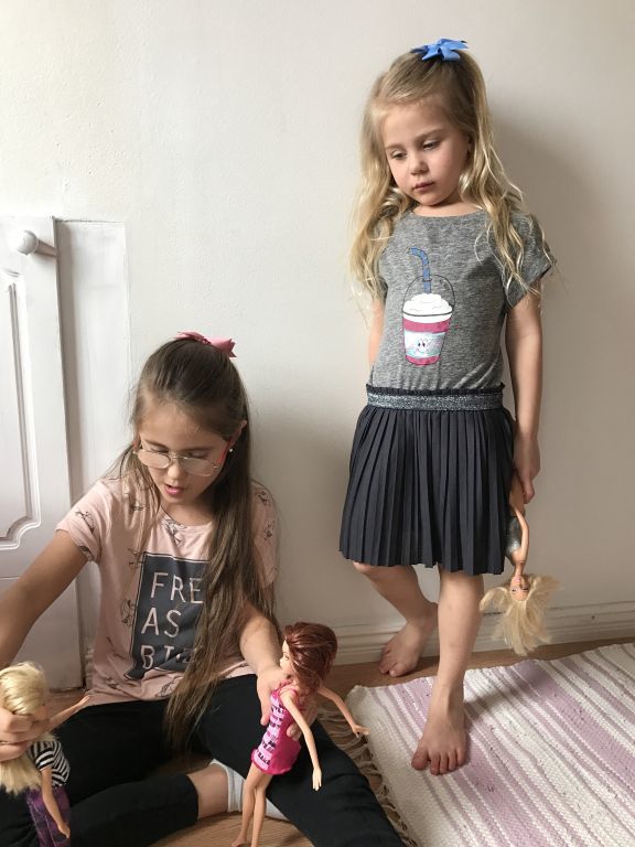 Satte mig i Nicoles rum häromdagen för att hjälpa henne med lite saker, plötsligt var hela gänget där och tyckte att det var så spännande att kika vad hon har i alla lådor. (Celina har hämtat gummistövlar och tänkte gå ut en sväng ;-))