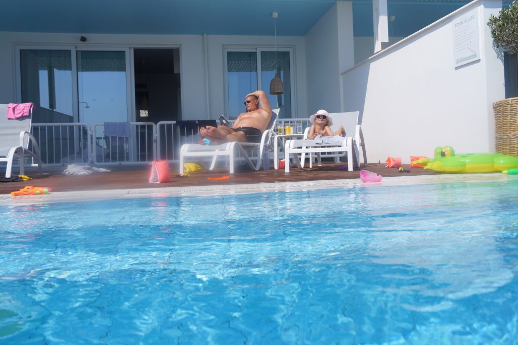 Sen skulle vi kolla in resten av poolområdet. Hur funkar allt? vart finns toaletterna? vart finns snacksbaren? Vart är bästa stället för barnen att bada? Vilka solstolar är värda att satsa på så att vi har koll? Ni vet, såna där knasiga funderingar. Det tar nån dag att komma in i det, men sen så rullar allt på som på räls.