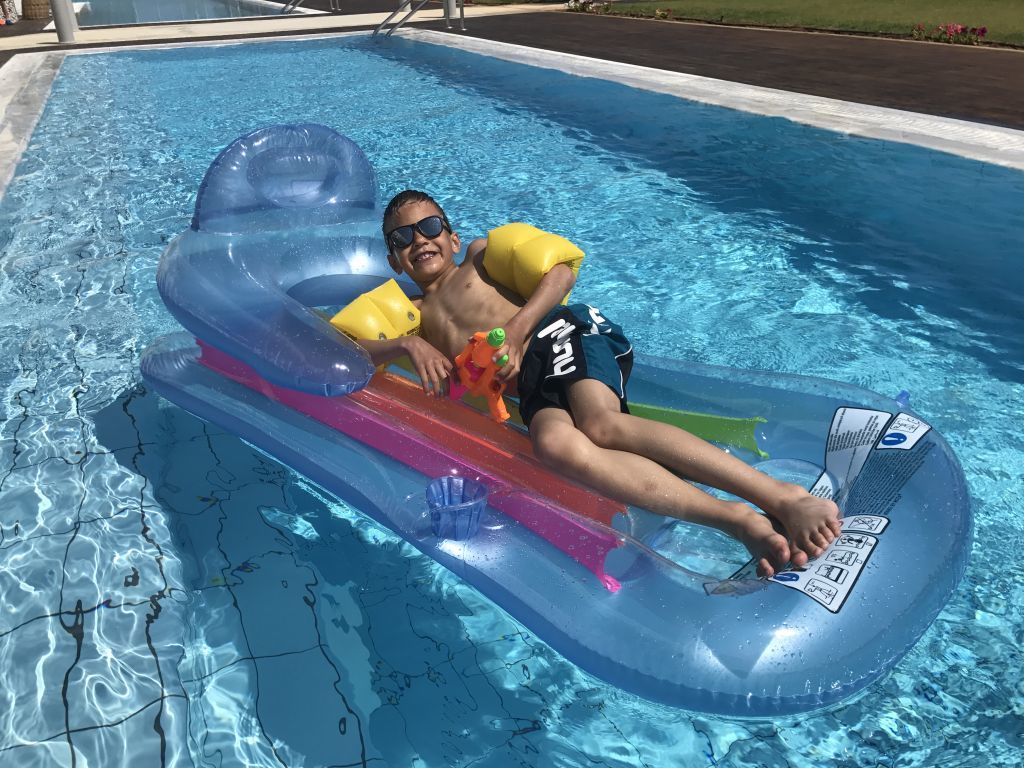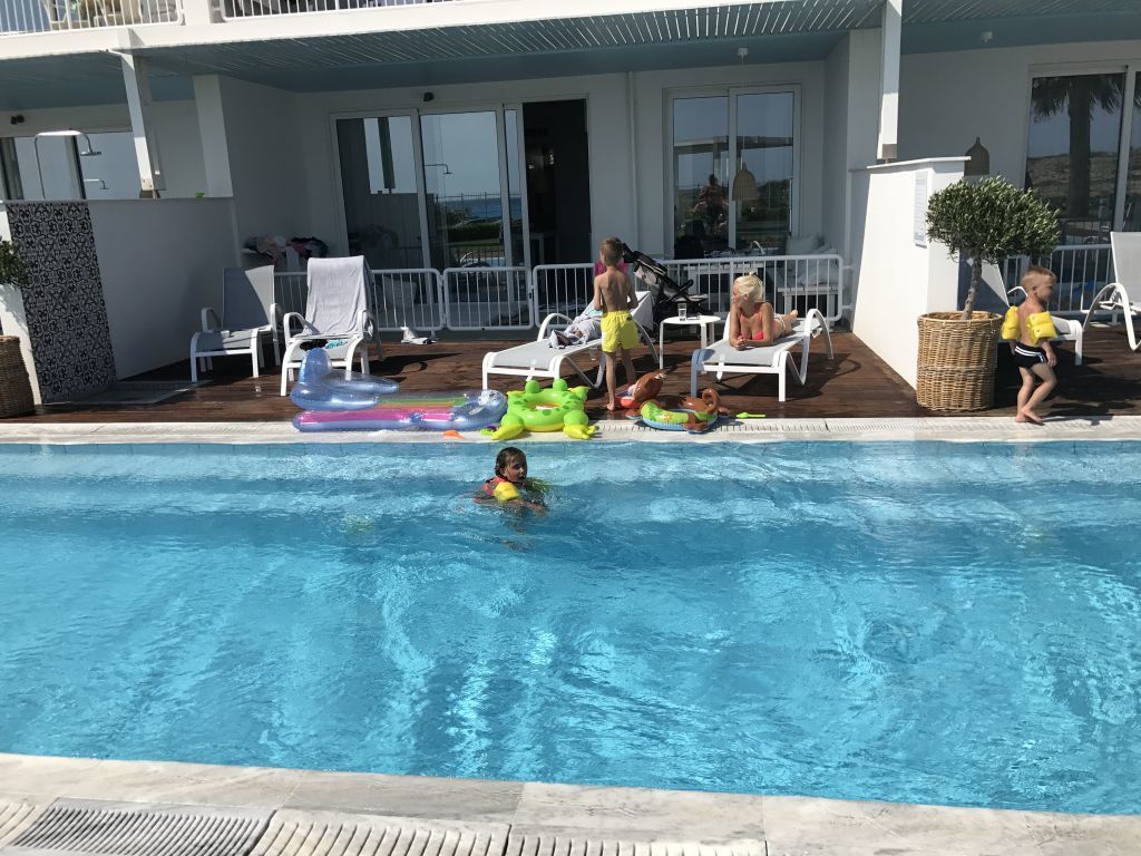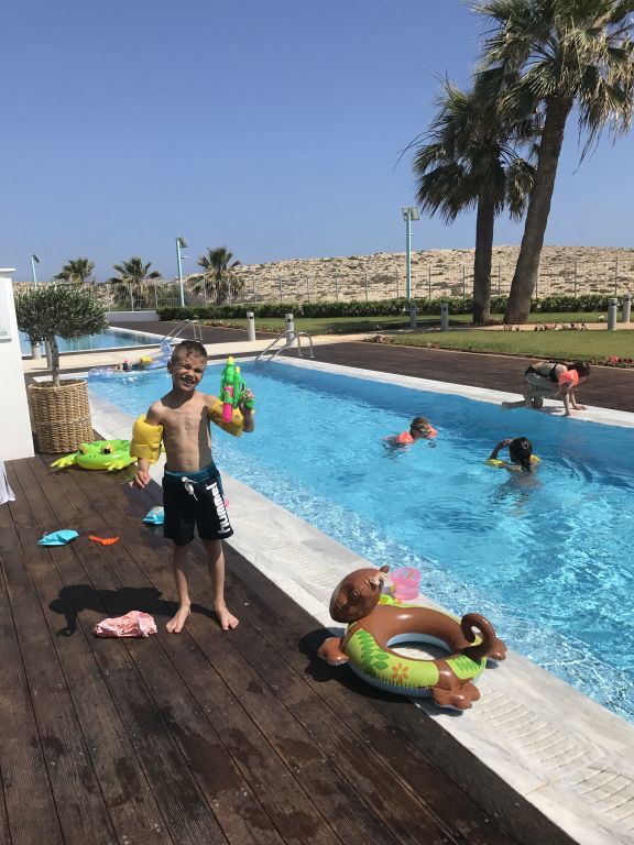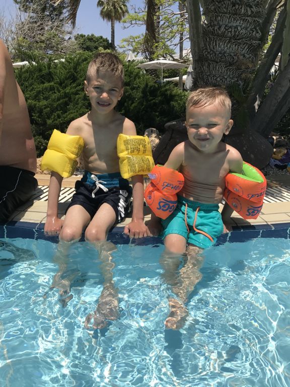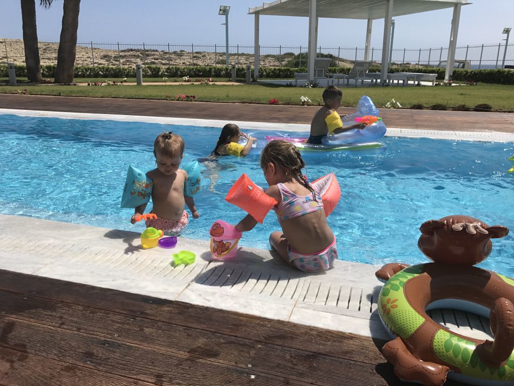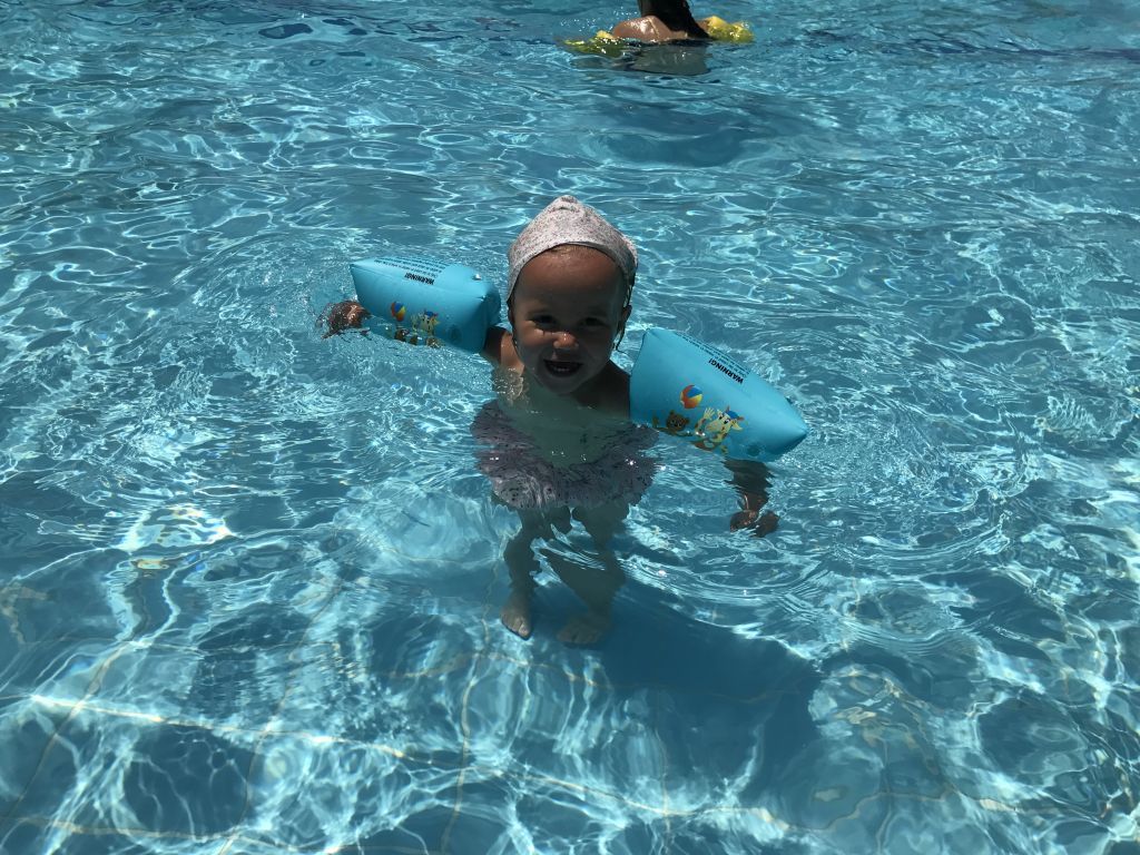 De första dagarna vid vårat pool fick alla barnen ha på sig muskler. (armpuffar) djupaste punkten var 130 cm och ingen av barnen kunde simma till 100 % så vi ville ta et säkra före det osäkra innan dom togs bort och såklart hade vi full kolla hela tiden.