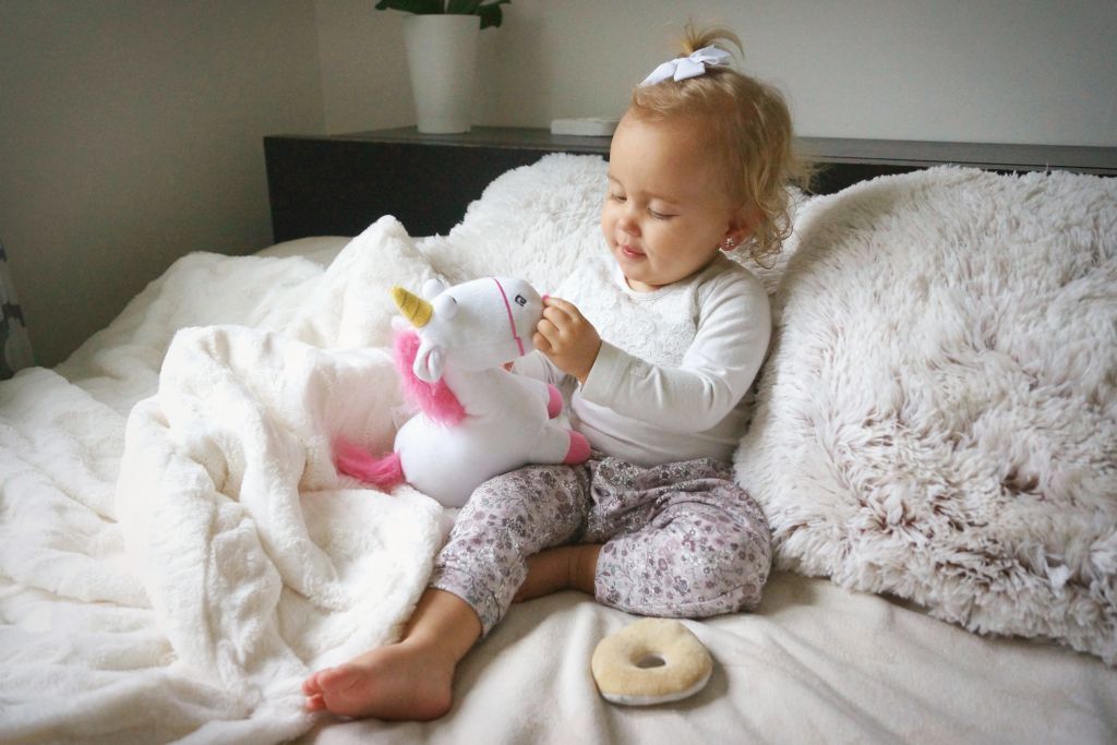 Det kommer vågor som är ”inne” som inrednings detaljer i barnrum lite titt som tätt- några går över ganska fort och några stannar kvar lite längre. Just nu är b la. söta enhörningar poppis. Jag har väl inte följt några trender slaviskt, jag köper det jag tycker är fint, vare sig det är inne eller inte. Men jag tänkte på det är jag städade Vanessas rum och såg den här mjukis enhörningen. Hahaha, den är allt annat är jättesöt, men gullig är den 😀