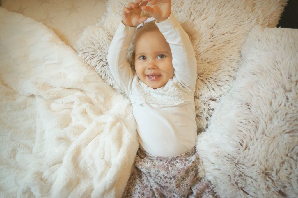 Bytte sängkläder i vårt rum och såklart skulle Celina dit och hoppa och skutta.