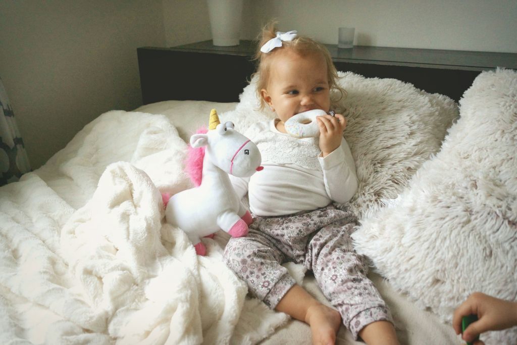 Det kommer vågor som är ”inne” som inrednings detaljer i barnrum lite titt som tätt- några går över ganska fort och några stannar kvar lite längre. Just nu är b la. söta enhörningar poppis. Jag har väl inte följt några trender slaviskt, jag köper det jag tycker är fint, vare sig det är inne eller inte. Men jag tänkte på det är jag städade Vanessas rum och såg den här mjukis enhörningen. Hahaha, den är allt annat är jättesöt, men gullig är den 😀