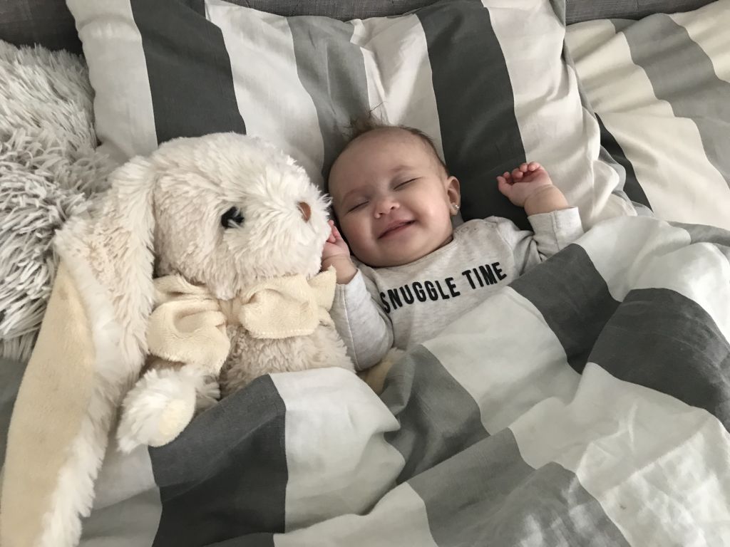 3. Nej men lilla pluttan vad söt hon är. Ler hon i sömnen? Hihi så gulligt <3